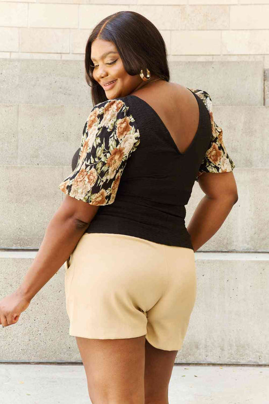 And The Why Hold Me Close Full Size Floral Print Textured Sleeve Knit Top