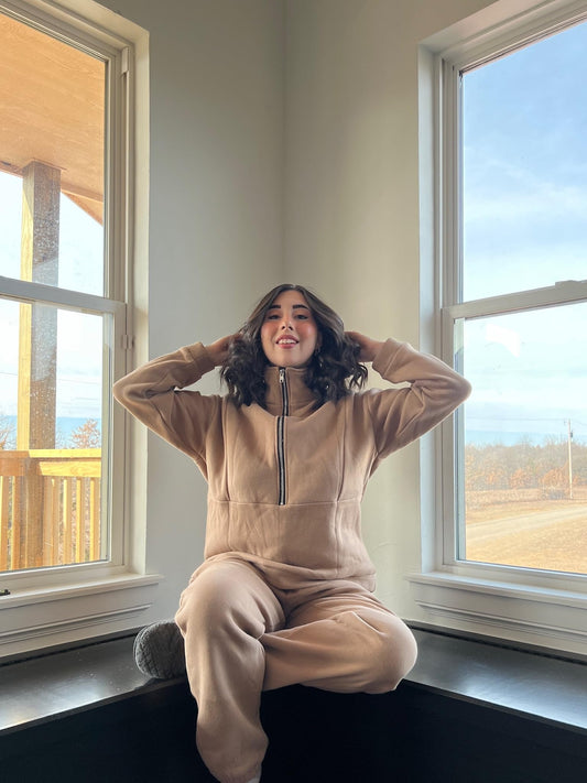 Eisctnd Fleece 2 Piece Outfits Half Zipper Jogger Set Crop Sweat Suits for Womens 2 piece Sweatpants Tracksuit Set LightGrey S