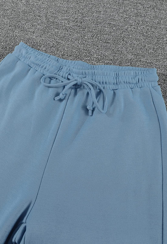 Fixmatti Women's 2 Piece Outfits Jogger and Sweatshirt Set Tracksuit Long Lantern Sleeve Sweatsuit Blue M