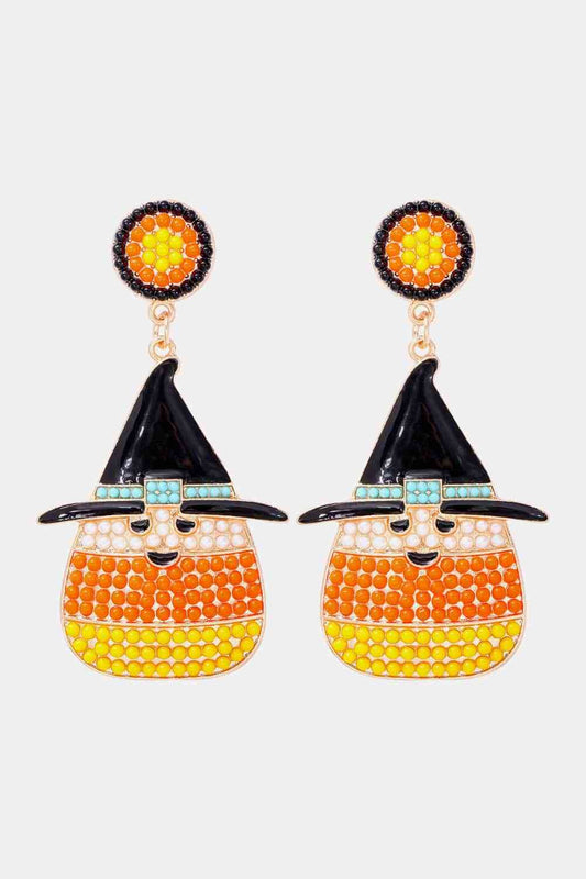 Pendientes colgantes de perlas sintéticas con forma de sombrero de bruja