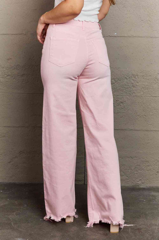Vaqueros de pernera ancha y cintura alta de tamaño completo Raelene de RISEN en rosa claro