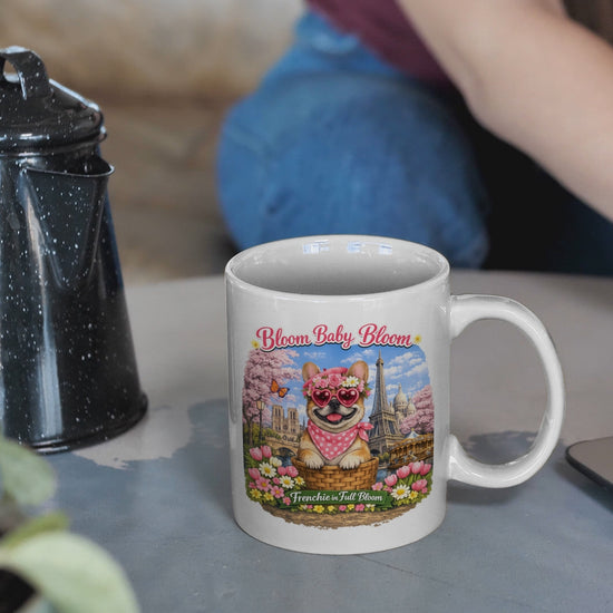 Frenchie in Full Bloom 15oz Ceramic Mug — Parisian Floral Dog Coffee Cup