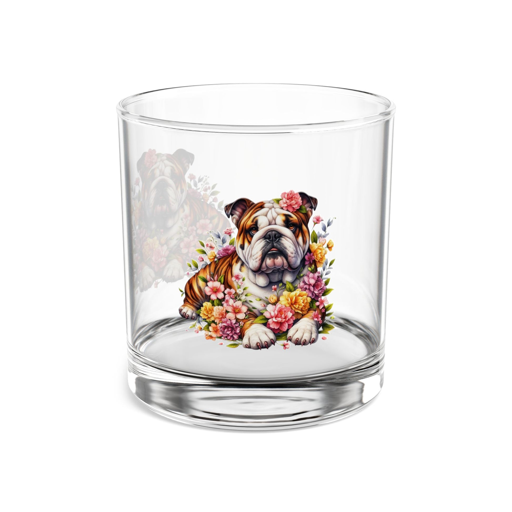 Bulldog Floral Rocks Glass - 10oz Decorative Drinking Tumbler